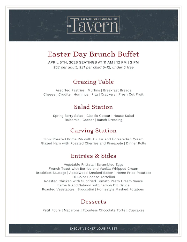Reservations are required. Call 315.824.2300 to reserve your table.